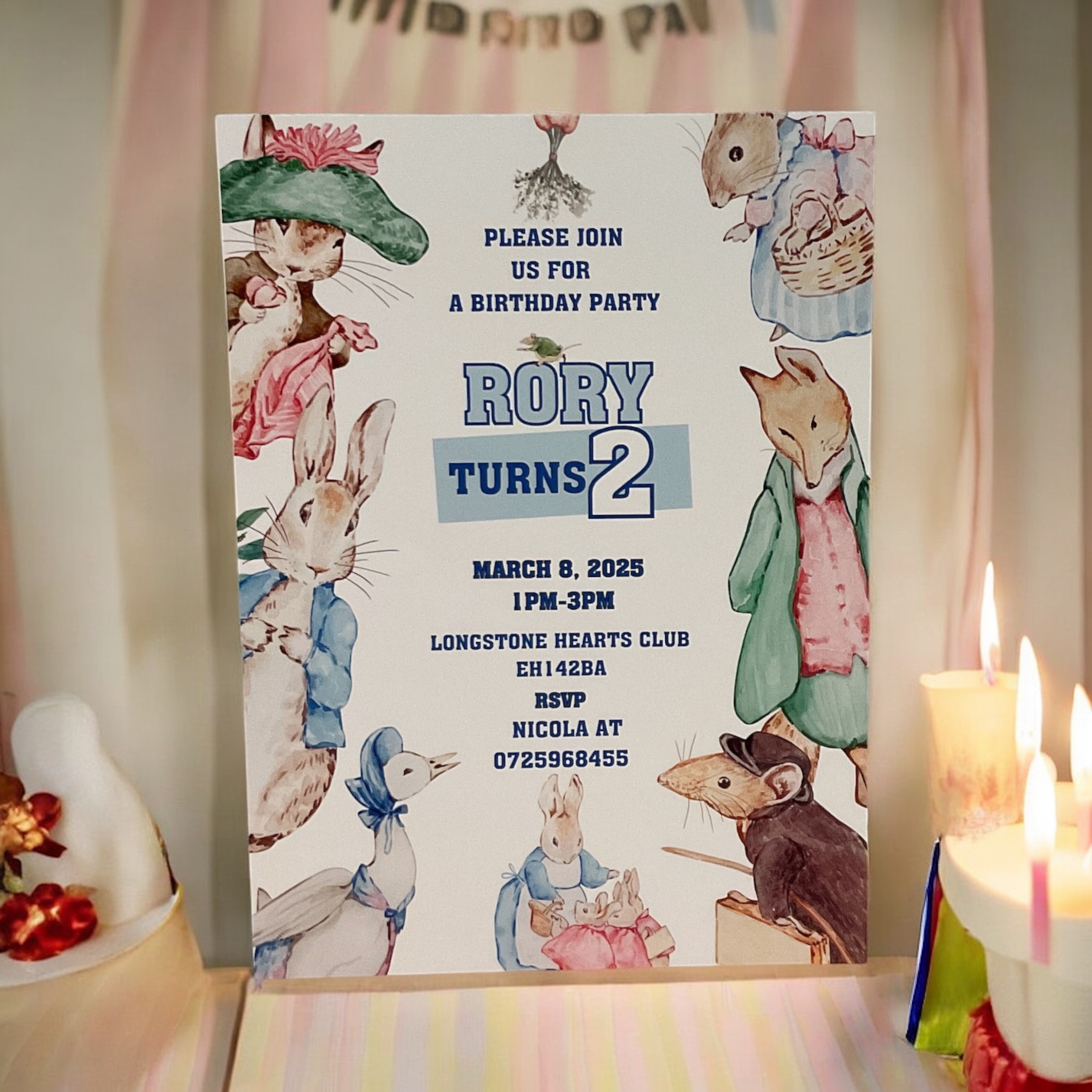 10 x Hand made Peter Rabbit Birthday Party Invitations