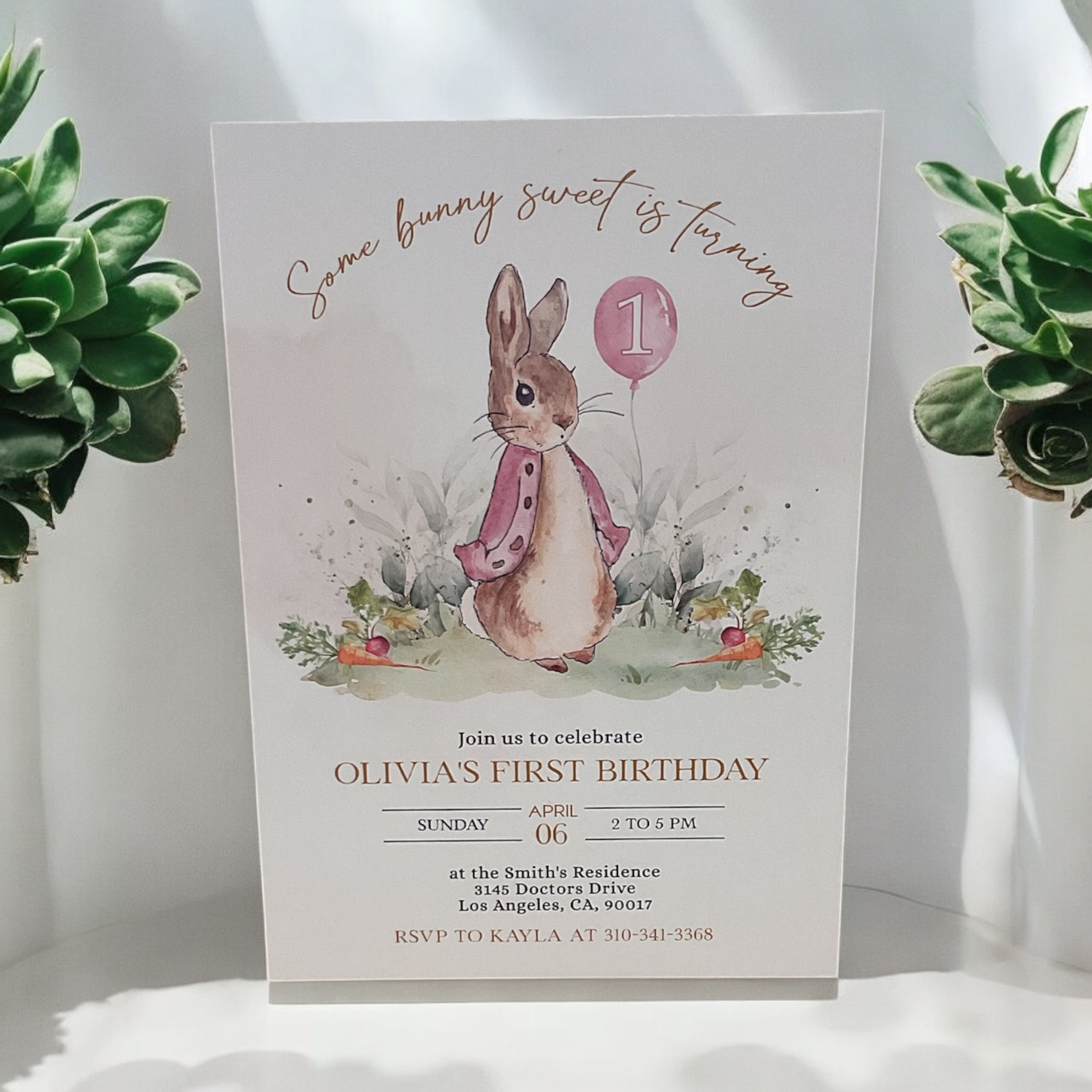 / 10 x Hand made Peter Rabbit Girl, Birthday Party Invitations